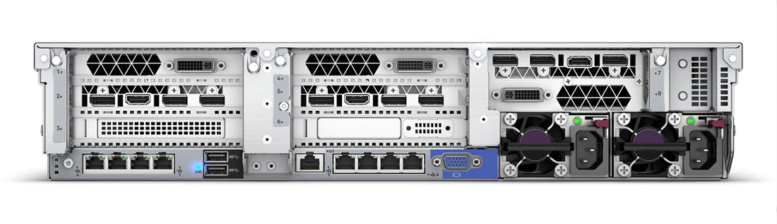 This refurbished server is powered by Intel's new Scalable family of processors which includes Platinum 8200 series, Gold 6200 & 5200 series, Silver 4200 series & 3200 series Bronze processors. These new processors can have any number of cores ranging from 4 to 28. The higher number of cores you have in your configuration will provide great processing power which means you can have more containers & VMs to support different workloads all under one chassis. One or Two HPE Flexible Slot power supplies are what powers this system and they come in a variety of options, either a 500W, 800W, or 1600W power supplies with efficiencies of 94% and 96%. Flex Slot power supplies are certified for high-efficiency operation and offer multiple power output options, allowing customers to choose the power supply which is perfect for specific server configurations. This flexibility helps to reduce power waste, lower overall energy costs, and avoid "trapped" power capacity in the data centre.